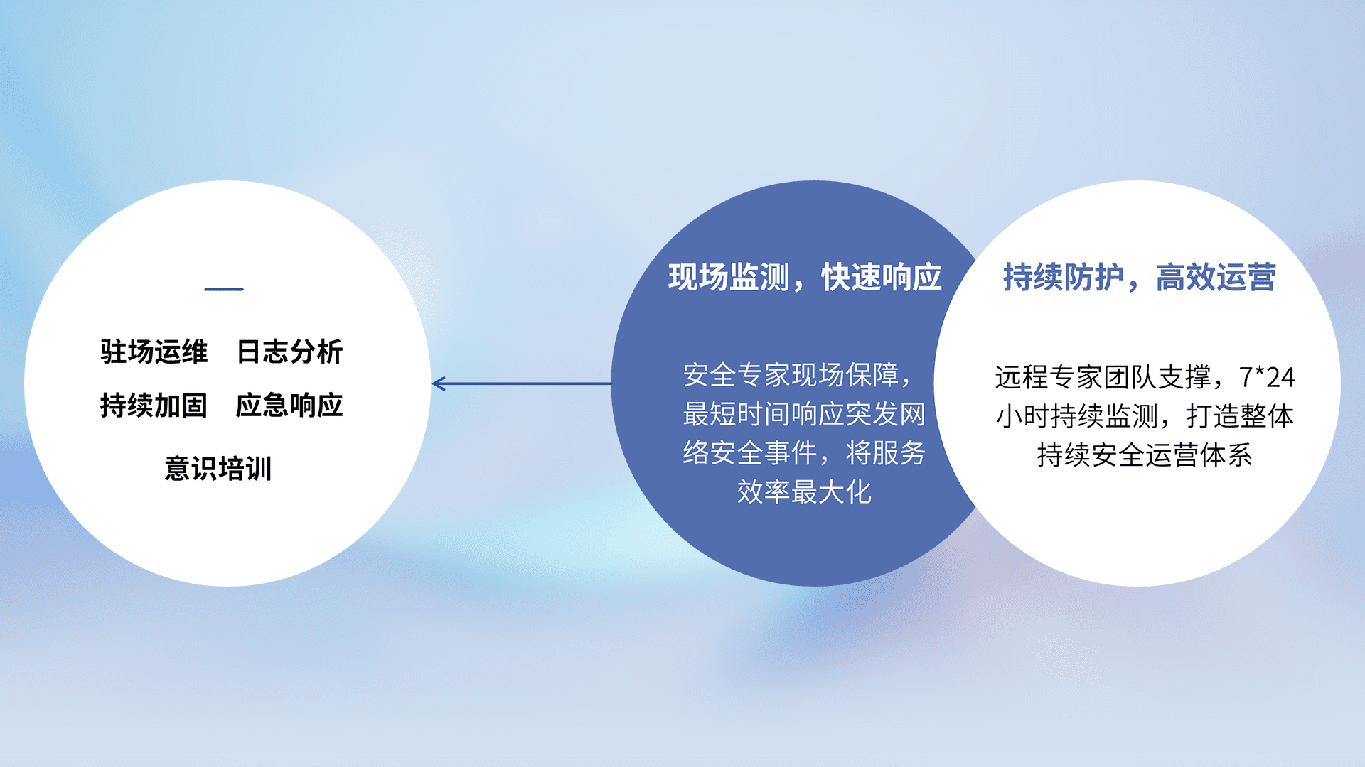7X24小时持续监测安全事件,保持安全策略有效性,降低资产脆弱性风险,,,精准拦截黑客攻击,,,,减少被黑客利用的机会,,,第一时间遏制,,降低损失。。。